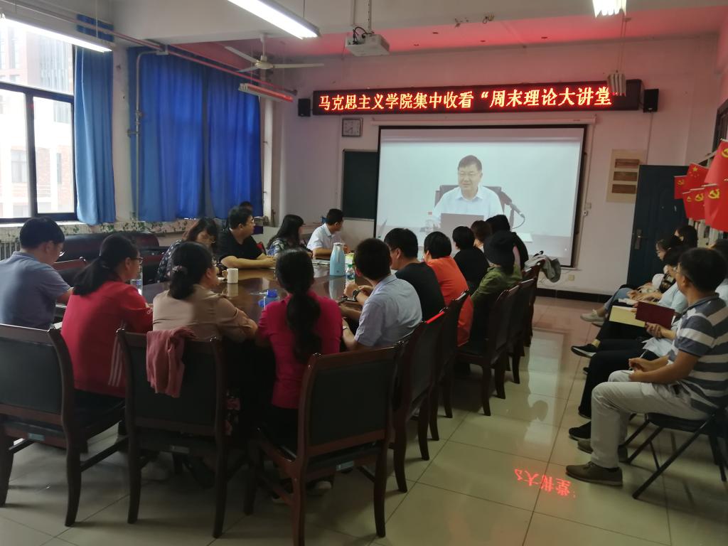 根据《教育部办公厅关于开展全国高校思想政治理论课教师“周末理论大讲堂”活动的通知要求》,9月17日下午,马克思主义学院组织全体教师集中收看“周末理论大讲堂”。