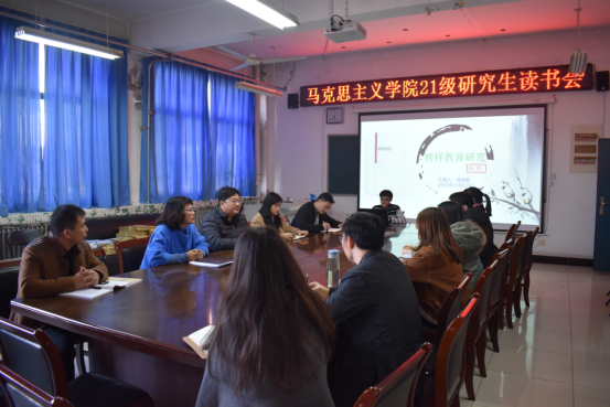 11月12日下午,马克思主义学院在8号楼508会议室举行读书交流会。本次交流会由学院副院长孙喜英主持,学院党政领导班子全体成员出席会议,研究生秘书、研究生班主任、21级全日制研究生参加会议。