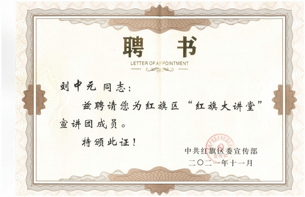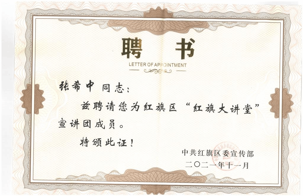 近日,新乡市红旗区成立了“红旗大讲堂”,从全区干部群众及先进人物中遴选出政治过硬、业务精通的人员组建理论宣讲专家团队。马克思主义学院教师刘中元、张希中入选。