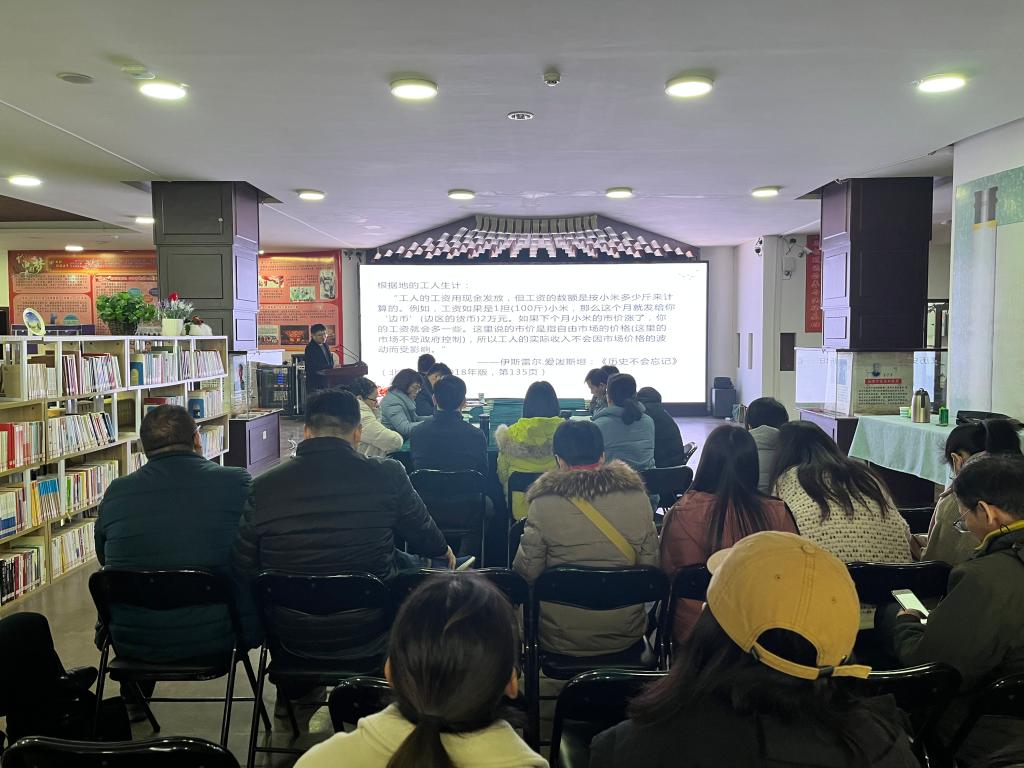 为深入学习贯彻习近平新时代中国特色社会主义思想和党的十九届六中全会精神,持续推进党史学习教育,按照河南科技学院《关于举办2021年党员培训班的通知》及我院党员培训计划,12月10日下午,马克思主义学院在国情国史体验馆举办党的十九届六中全会精神宣讲会。本次宣讲会由王鑫宏博士主讲,全体教职工参加了会议。会议由学院党总支书记郭立主持。