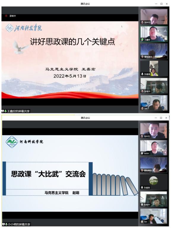 为贯彻《中共河南省委教育工委 中共河南省委宣传部关于开展2022年度全省学校思想政治理论课教学技能“大练兵、大比武、大展示、大提升”活动的通知》(豫教工委〔2022〕4号)和省教育厅关于《河南省本科高校“课堂教学质量提升年专项行动”实施方案》(教办高〔2022〕33号)精神,提升教师课堂教学质量,5月13日下午,马克思主义学院以视频会议方式召开经验交流会,学院领导班子和全体教师参加会议。会议由副院长刘中元主持。
