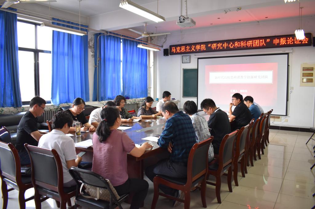 为培养和造就高水平的科研团队和研究中心,进一步推动学院学科教学(思政)硕士点建设和马克思主义理论硕士点立项建设,全面提升学院科研创新能力和社会服务能力,6月2日,马克思主义学院在学院会议室召开研究中心和科研团队申报论证会。会议由孙喜英副院长主持,学院领导、学术委员会成员等参加评审。