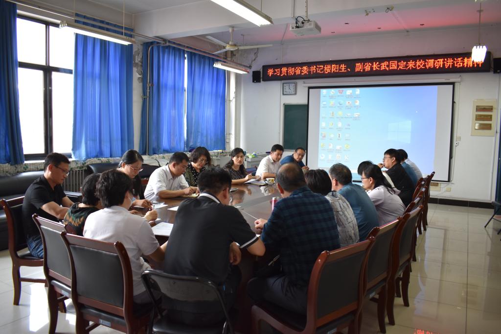 6月2日,马克思主义学院在8508会议室召开了学习贯彻省委书记楼阳生、副省长武国定来校调研时讲话精神的专题会议,院长、院党总支副书记王冰蔚主持会议,办公室人员、党支部书记、教研室主任参加了会议。
