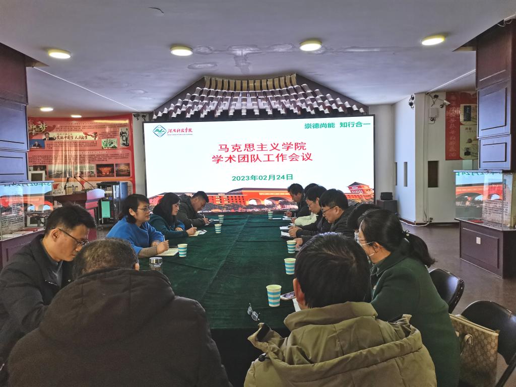 为学习贯彻党的二十大精神,加强学术团队建设,推进马克思主义理论一级学科硕士点申报工作,2月24日下午,马克思主义学院在国情国史体验馆召开学术团队工作会议,开展团队年度考核,部署新学期团队工作任务。学院领导班子全体成员、学术委员会委员及各学术团队负责人参加会议,会议由院长王冰蔚主持。