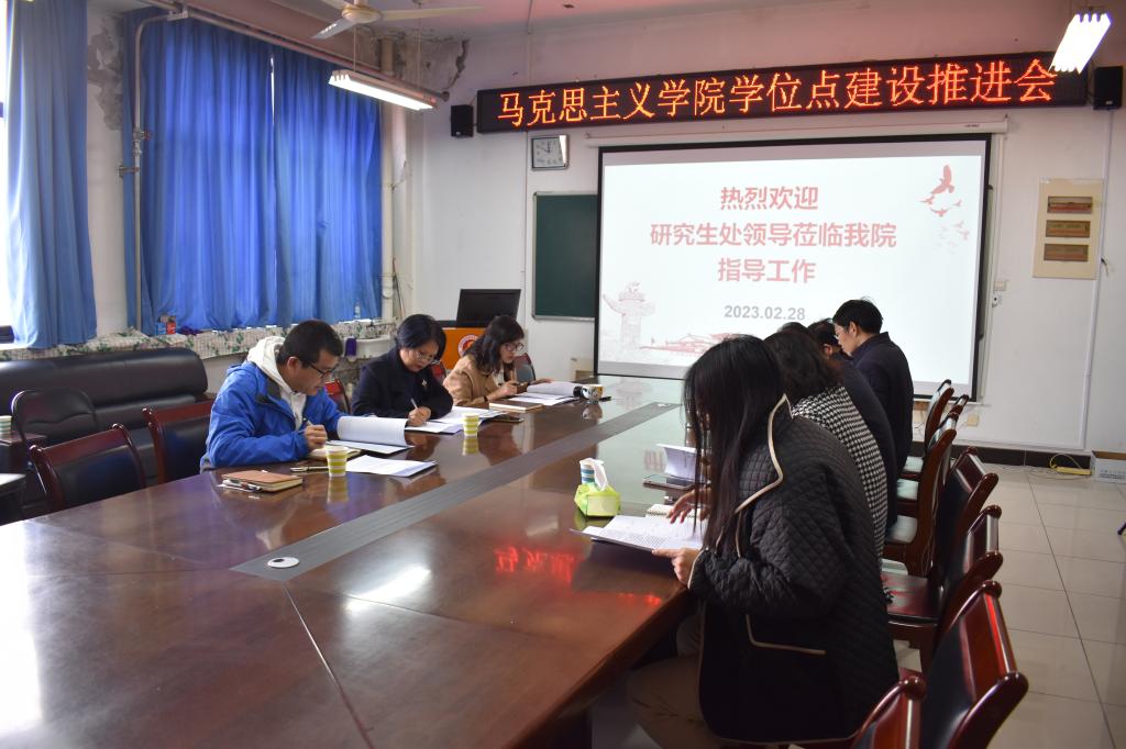 2月27日上午,马克思主义学院在8号楼508会议室召开硕士学位点申报工作推进会,学院学位点申报工作领导小组全体成员参会。研究生处副处长扈惠灵、学位点建设科科长王异民莅临指导。