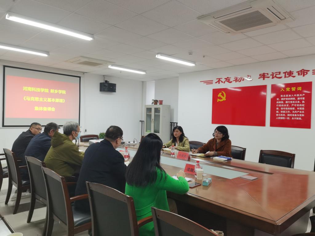 为提升思政课教育教学效果,4月3日下午,马克思主义学院与新乡学院马克思主义学院联合举行集体备课会。新乡学院马克思主义学院党委书记孙晓棠、院长汪如磊、副院长沈田青,河南科技学院马克思主义学院院长王冰蔚、副院长孙喜英以及两校“马克思主义基本原理”教研室专职教师参加了备课会。备课会由新乡学院马克思主义学院“马克思主义基本原理”教研室主任万庆主持。