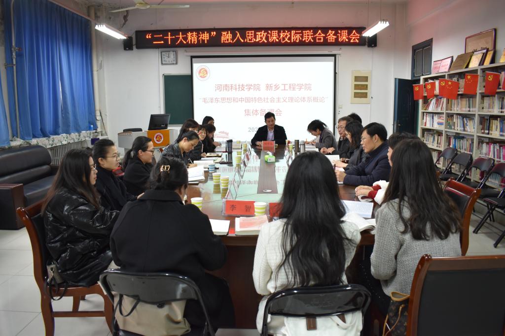 师生集体共学,在学思践悟中践行初心使命。利用每周五由教育部社科司主办的周末理论大讲堂、教育部社科司主办的“习近平新时代中国特色社会主义思想概论”优化课件培训、教育部教材局组织的全国高校思想政治理论课2023年版教材培训等,组织全体教工党员集中学习研讨10余次。同时,各教研室围绕党的二十大精神融入思政课开展集体备课和研讨6次,联合长安大学、河南师范大学、新乡学院、新乡工程学院开展校际备课和研讨4次,此外,举行专题报告1次,组织教职工观看主题教育电影1次,举办研究生“书享”论坛3期。通过学习研讨,使广大思政课教师明确新要求,领会新理念,掌握新方法,坚守立德树人初心,为党育人、为国育才,培养更多担当民族复兴大任的时代新人。