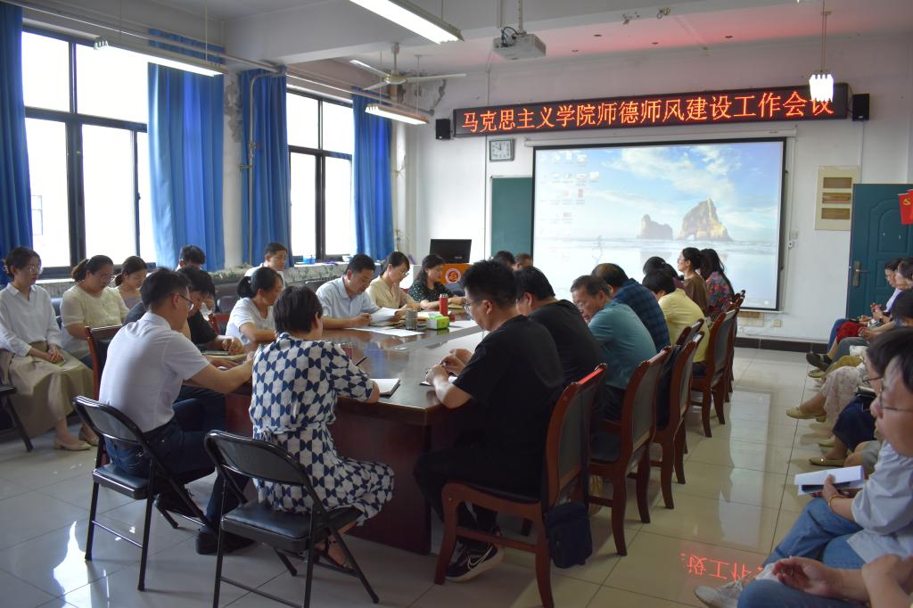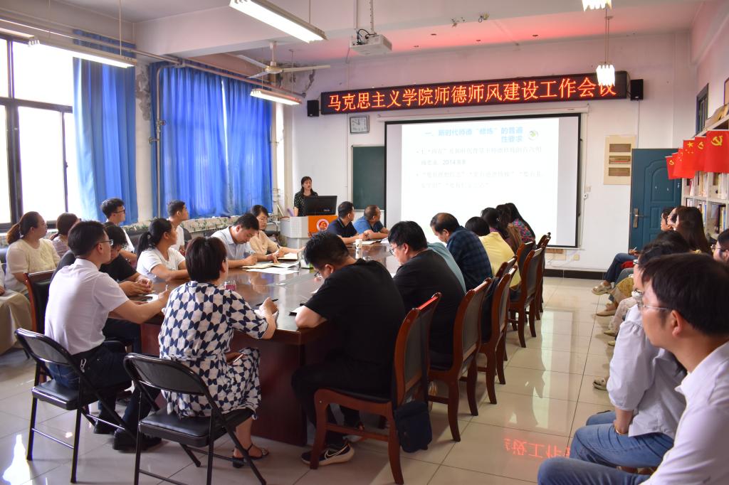 为进一步加强师德师风建设,提高教师师德修养,营造风清气正的教育教学环境,结合主题教育工作安排,6月9日下午,马克思主义学院在8#508会议室召开师德师风建设工作专题会议,学院班子成员和全体教师参加了会议。会议由学院党委副书记刘中元主持。