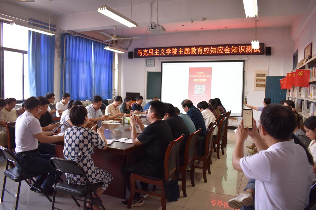 为进一步推动主题教育走深走实,6月9日下午,马克思主义学院党委组织开展了主题教育应知应会知识测试,学院全体党员教师参加了测试。