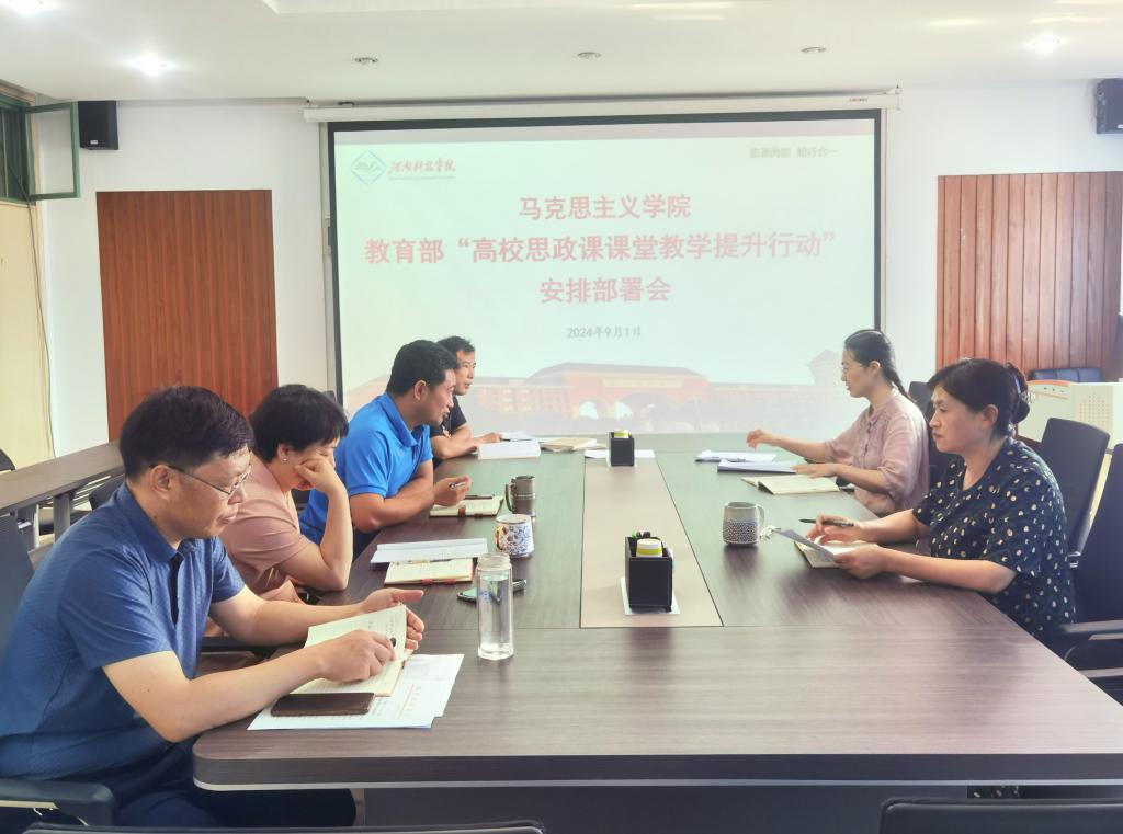 会上,王冰蔚领学了《中共河南省委教育工委办公室河南省教育厅办公室转发教育部办公厅关于开展2024-2025学年高校思政课课堂教学提升行动的通知》(教思政函〔2024〕511号),并按照通知要求对相关工作进行详细安排。