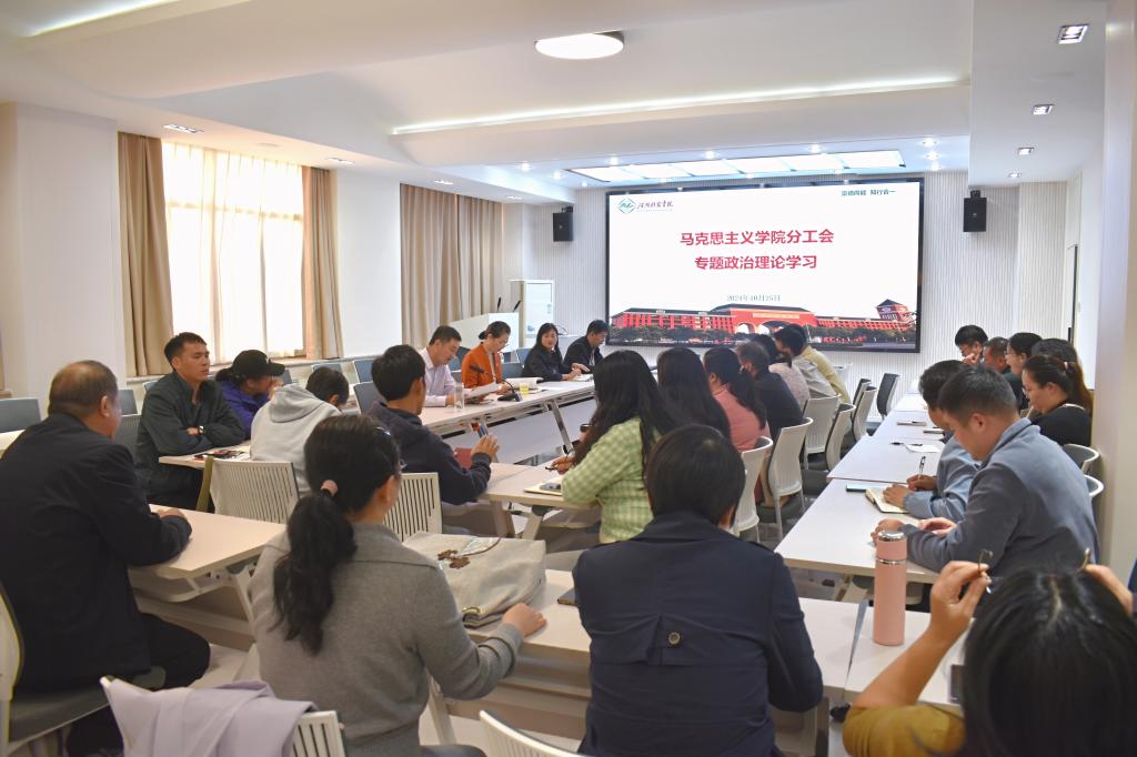 为进一步提升我院工会会员的理论水平和政治素养,为学校和学院事业高质量发展贡献工会力量,根据《河南科技学院工会关于加强政治理论学习的通知》(校工字〔2024〕16号)精神,10月25日下午,马克思主义学院分工会在学院809会议室开展专题政治理论学习活动,全体工会会员参加了学习。活动由学院党委副书记、工会主席刘中元主持。