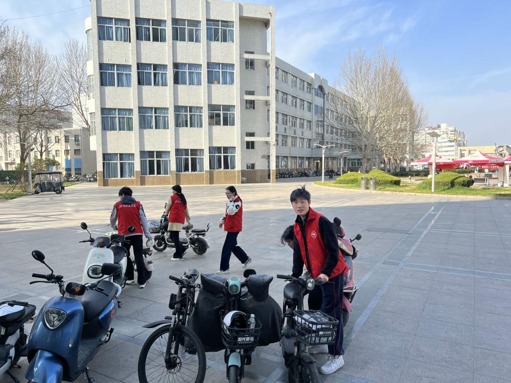 活动伊始,大家在零号楼前把违规停放的电动车统一移至规划停车区,并在停车线旁引导师生规范停车,向学生宣扬文明出行理念。经过大家的努力,原本杂乱的停车区域焕然一新,通道恢复畅通,校园秩序显著改善。