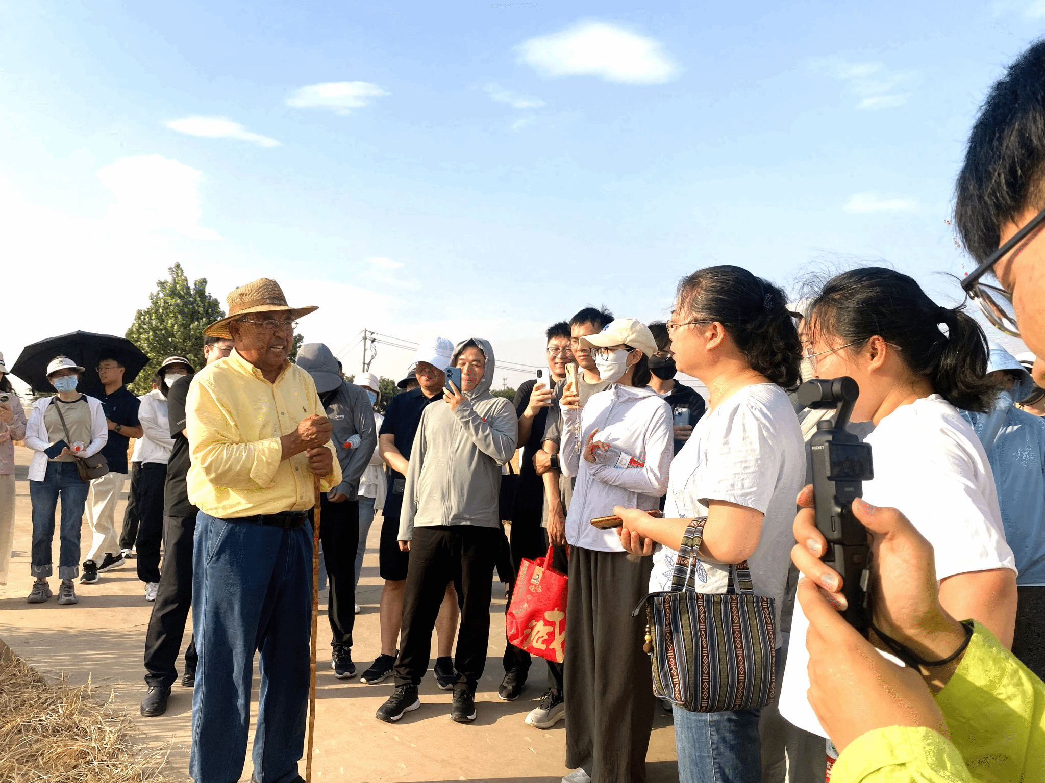 在金黄挺拔的麦浪间,小麦育种专家茹振钢教授为全体教师带来一场生动的“田间课堂”。他以“百农系列小麦品种的育种历程”为主题,深情讲述了百农矮抗58、百农4199等标志性品种从实验室走向田间地头的艰辛与突破;通过一组组数据,展现了百农小麦品种在保障国家粮食安全中的关键作用。他强调:“每一粒种子背后,都是农业科技工作者数十年如一日的坚守。育种,不仅是育良种,更是育‘种子精神’——扎根土地、服务人民、勇攀高峰。”河南省首席科普专家、河南省杂交小麦工程技术研究中心主任陈向东向全体教师系统介绍了试验田的整体布局与科研成果。他指出,朗公庙试验田不仅是国家现代农业科技示范展示基地,更是学校“三全育人”的实践平台。“每一株小麦都是一本鲜活的教科书——从选育到推广,凝聚着三代育种人的心血,充分彰显了我校的“百农精神”。他以百农4199为例,阐释科研团队如何通过分子标记辅助选择技术实现抗赤霉病与高产的平衡,并将育种科学与育人哲理紧密结合,鼓励思政课教师深入挖掘校史中的“百农精神”,将其转化为思政课的鲜活素材。