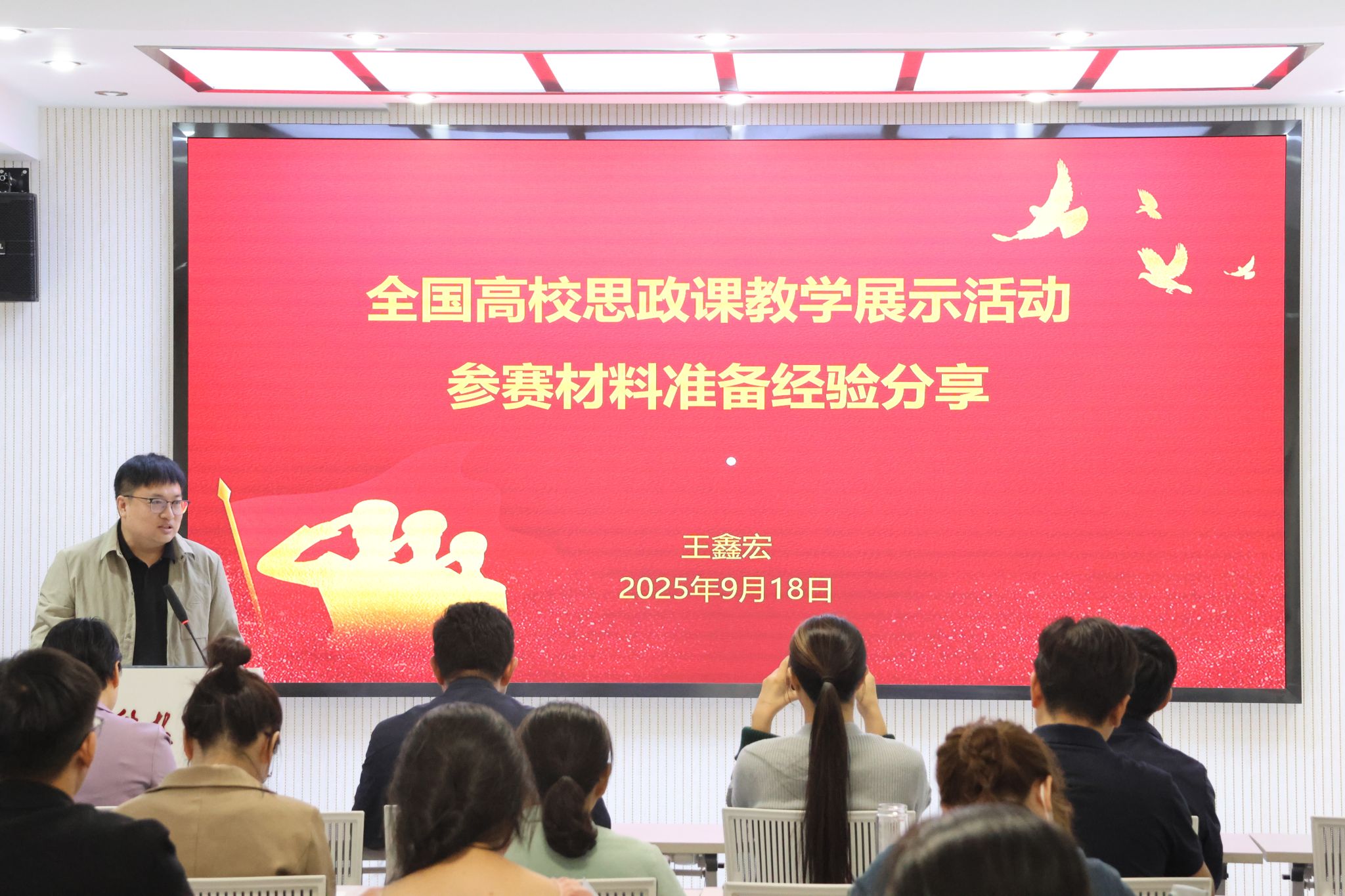 为助力教师精准把握教学竞赛备赛要点、提升教学成果申报能力,9月18日下午,马克思主义学院在0号楼809会议室举办思政课名师分享会。此次分享会是学院“深入学习阶段”的“榜样示范”核心环节之一,学院领导班子成员及全体专兼职思政课教师参会,报告会由副院长张雪霞主持。