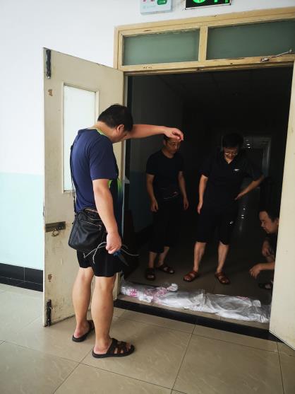 排查人员深入每一个实验室、研究室及实验室周边,仔细查看了实验室内设备情况、用电安全情况、外围走廊及楼顶排水沟等设施,对在排查中发现的问题及时向学校相关部门进行了沟通汇报,针对排查中发现的走廊漏水隐患,学院领导带领大家自制沙袋,对关键部位进行了封堵。