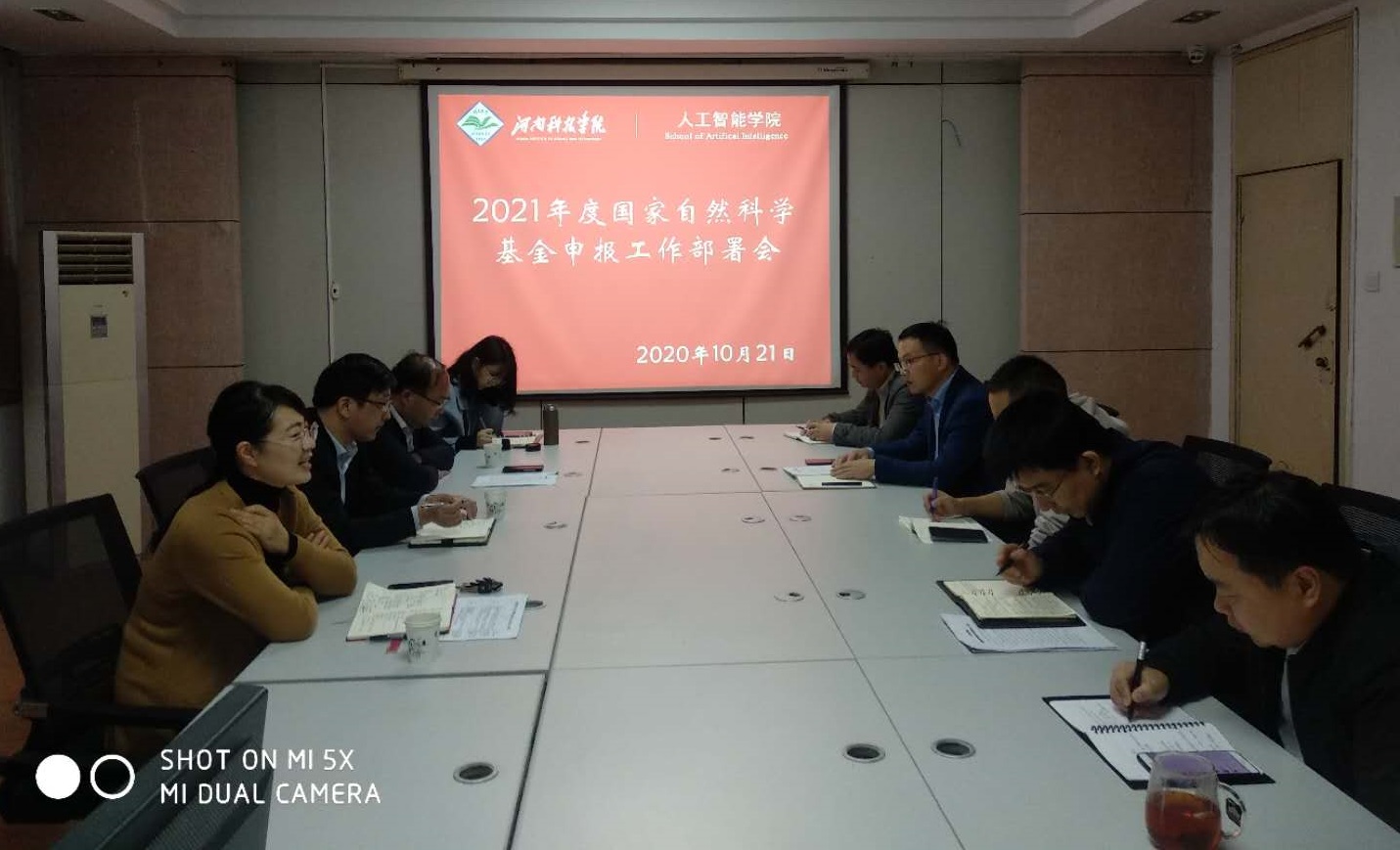 为进一步调动广大教师申报基金的积极性,根据学校“2021年度国家自然科学基金申报部署动员会”精神,10月21日上午,人工智能学院在电教综合楼803会议室举行了国家自然科学基金申报工作部署会,学院全体党政领导和教师参加,科技处刘润强副处长、李华博科长出席会议。会议由院长古乐声主持。