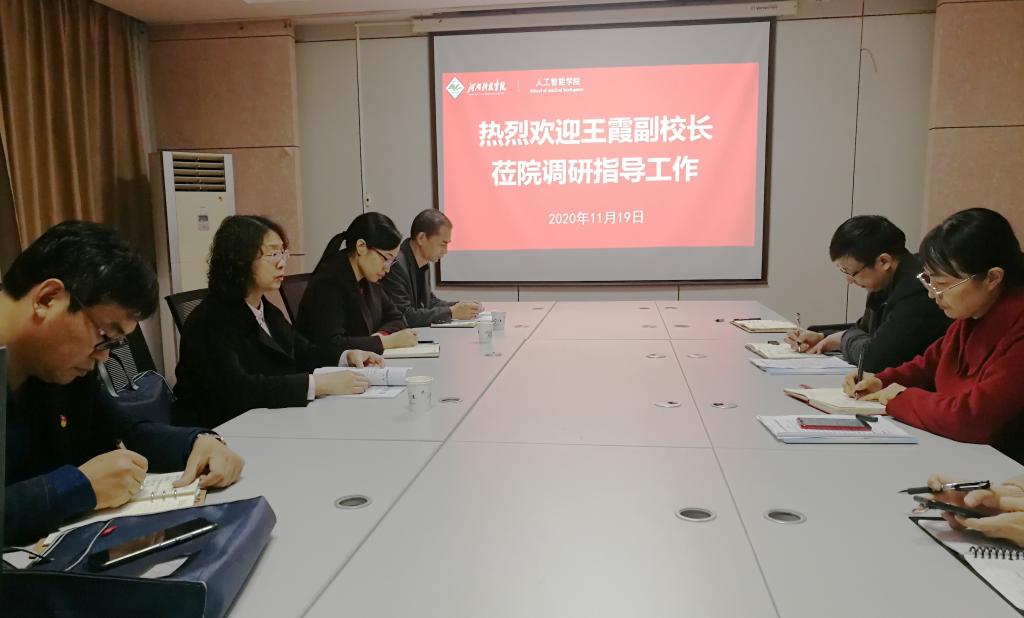 11月19日下午,副校长王霞来到电教综合楼7楼人工智能学院,看望学院教师、学生,调研指导人工智能学院学生工作,学生处负责人陪同调研。