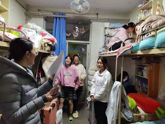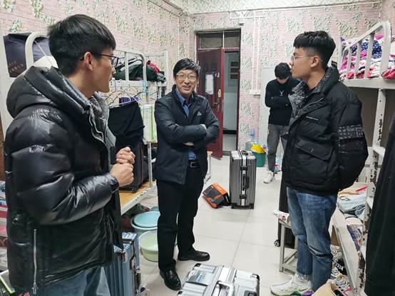 3月6日晚,学院党总支书记吴玲玲、院长古乐声、团委书记郭小月、兼职辅导员柴豪杰老师走访学生宿舍并与返校学生亲切交流。领导老师向学生致以新春的问候与祝福,提醒学生疫情防控工作不能松懈,要注重防护、加强锻炼,出现特殊情况及时联系辅导员老师,叮嘱同学们在新学期早日克服“假期综合症”,回归学校生活状态,投入新的学习当中。