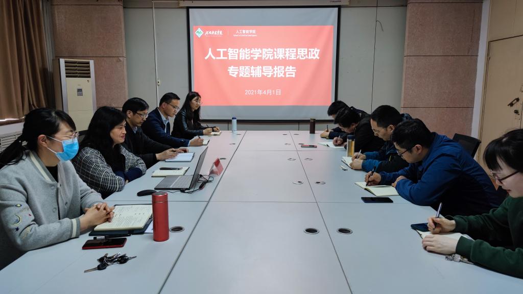 为全面贯彻习近平总书记关于教育的重要论述和全国高校思想政治工作会议精神,全面推进课程思政建设,充分发挥每门课程的育人作用,切实提高学院的人才培养质量,4月1日下午,人工智能学院邀请马克思主义学院院长王冰蔚教授来院做课程思政专题辅导报告。学院党总支书记吴玲玲、院长古乐声、副院长蔡磊及全体任课教师聆听了报告。报告会由党总支书记吴玲玲主持。