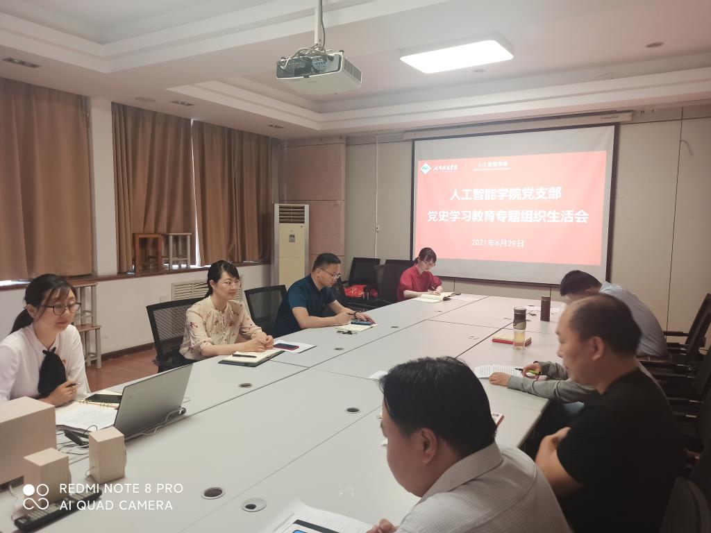 6月29日上午,人工智能学院党支部在0#803会议室召开党史学习教育专题组织生活会,支部全体党员参加。会议由党支部书记付俊辉主持。