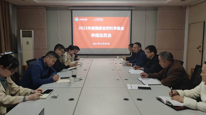 为推动学院“十四五”开局之年科研工作更好发展,根据学校“2022年度国家自然科学基金申报部署动员会”精神,10月29日上午,我院在电教综合楼803会议室举行了国家自然科学基金申报动员会,学院院长古乐声、党总支副书记王秀金、副院长蔡磊和全体教师参加了动员会,会议由蔡磊主持。