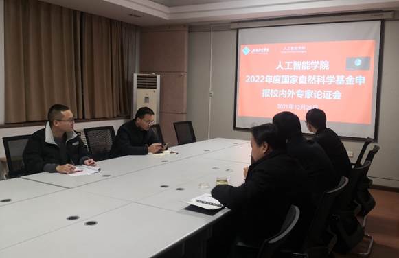 12月28日晚,人工智能学院在电教综合楼803会议室举行了2022年度国家自然科学基金申报校内外专家论证会。按照疫情防控要求,会议采取线上线下相结合的方式进行。会议邀请到山东大学陈振学教授、河南工业大学吴兰教授、北京工业大学张祥银副教授及国网全球能源互联网研究院张国梁博士对我院国家自然科学基金申报工作进行指导,项目申报人及相关老师参加了此次论证会,论证会由学院副院长蔡磊主持。