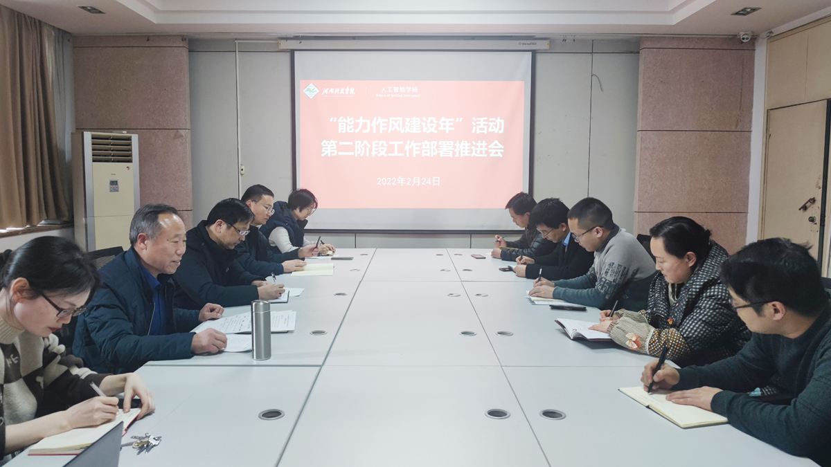 2月24日下午,人工智能学院在电教综合楼803会议室召开“能力作风建设年”活动第二阶段工作推进会,总结学院“能力作风建设年”活动第一阶段工作,安排部署第二阶段工作任务。学院党政领导班子成员及全体教师参加会议。