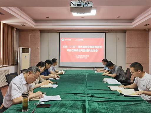会上,付俊辉报告了党支部通过普遍谈心谈话和支委会研讨形成的《人工智能学院支部委员会郑州“7•20”特大暴雨灾害追责问责以案促改专题民主生活会对照检查材料》。