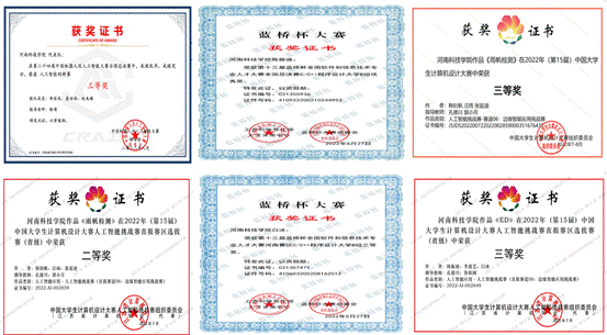 在第十五届中国大学生计算机大赛--人工智能挑战赛中,20级学生韩钊帆、汪雨的参赛作品《雨帆检测》获国赛三等奖、省赛二等奖;20级学生陈振迪、白冰、李鑫艺的参赛作品《ED》获省赛三等奖。