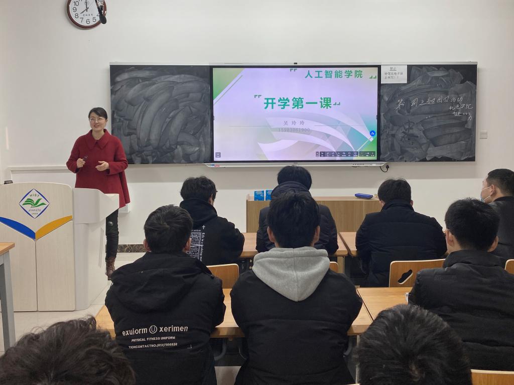 按照校党委《关于上好2023春季“开学第一课”的通知》要求,2月14日晚,人工智能学院党总支书记吴玲玲在东区弘毅楼A202教室为人工智能学院学生上“开学第一课”。