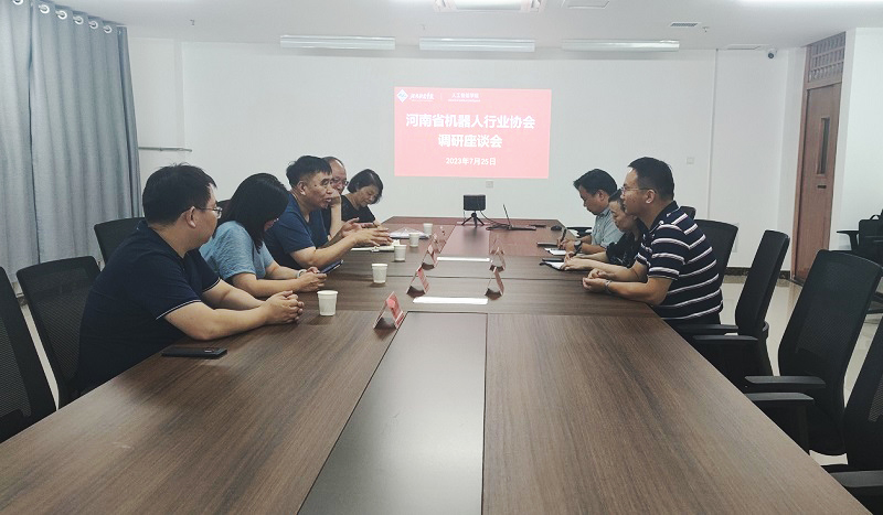 为全面落实2023年河南省政府工作报告装备重点工作任务,7月25日下午,河南省机器人行业协会王济昌会长一行五人莅临人工智能学院调研机器人创新应用场景及首台(套)重大技术装备项目研发进展。学院党政领导班子成员陪同调研,调研座谈会由院长蔡磊主持。