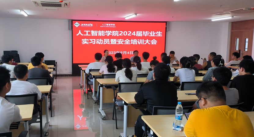 9月4日下午,人工智能学院在东区弘德楼B310培训室召开2024届毕业生生产实习动员暨安全培训大会,会议由学院副院长孔德川主持,团委书记郭小月、教学秘书王顺岗、2020级全体学生参加。