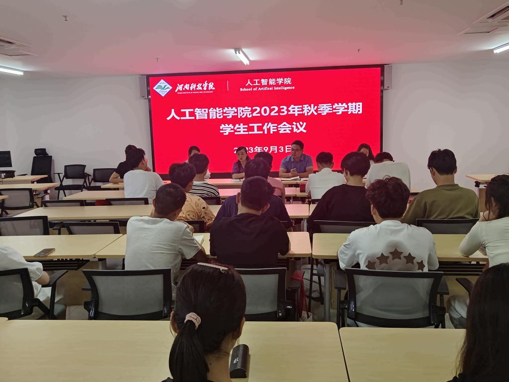 为进一步做好秋季学期学生工作,9月3日下午,人工智能学院在弘德楼B310会议室召开新学期学生工作会议。学院党委书记叶晖、副书记申冲,团委书记郭小月,辅导员薛然、王艳艳及全体学生会干部、22级各班班委、新生代理班主任参加会议。