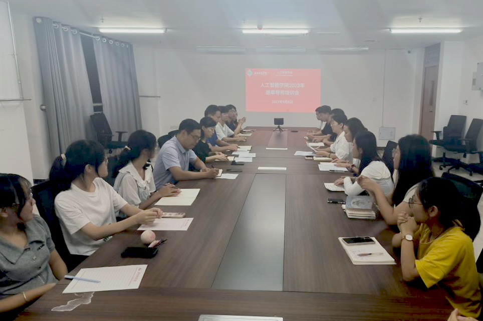 为扎实做好秋季学期迎新工作,9月5日晚,人工智能学院在弘德楼A205会议室举行2023级朋辈导师培训会。学院党委书记叶晖、院长蔡磊、党委副书记申冲、团委书记郭小月,辅导员王艳艳及全体学生会干部、2023级朋辈导师参加会议。