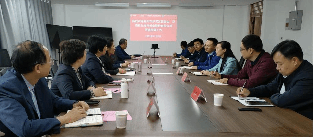 11月3日下午,洛阳市伊滨区党工委委员、科技城管委会副主任史晓晓,郑州佛光发电设备股份有限公司董事长雷红红一行8人来院就军民重大项目部署、科技成果转化、高层次科研平台建设、人才培养与就业等方面进行深入洽谈交流。