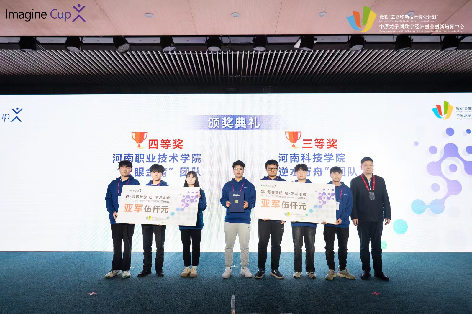 11月22日上午,第二十二届微软创新杯大赛(中国区)河南赛区总决赛在郑州落下帷幕。在此次总决赛中,我院学生宋浩华、王林杰、陈科技、王上任(指导教师:蔡磊)组成的逆水行舟团队获得亚军,将与其他三个团队一起登上世界舞台,代表河南赛区,参加微软创新杯大赛全球预选赛。另一个由韩登如、张岚怡、张文圣、李家瑞同学组成的无敌巅峰队也在此次比赛中获得前十的好成绩。
