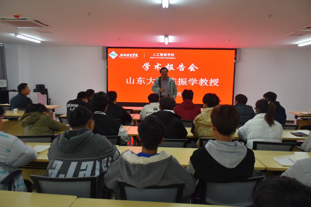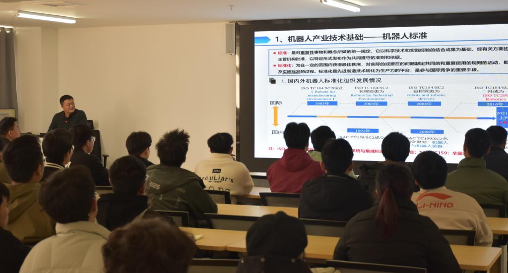 随后,赵宏剑、陈振学在弘德楼B310分别作了题为《工业机器人技术推动智能制造技术变革和产业升级》和《人工智能赋能轮胎制造产业》的学术报告,部分教师和研发团队骨干参加了报告会。报告会由蔡磊主持。