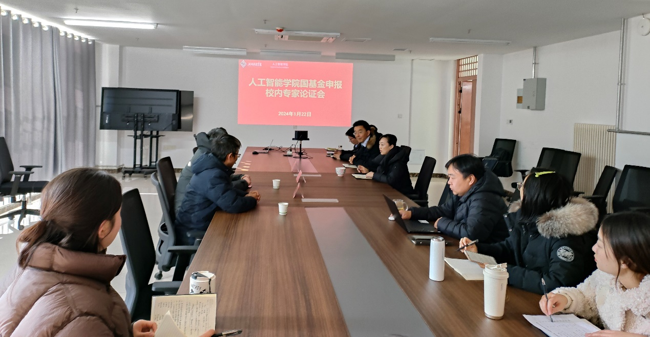 按照人工智能学院国家自然科学基金申报工作进展安排,1月22日下午,学院在弘德楼A205学院会议室举行国家自然科学基金申报校内专家论证会,邀请数学科学学院陈永刚教授、机电学院王占奎教授担任论证专家。学院班子全体成员、申报基金教师及部分教师代表参加了此次论证会。会议由徐涛主持。