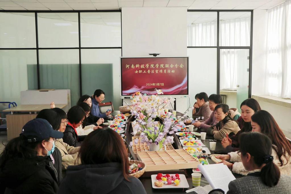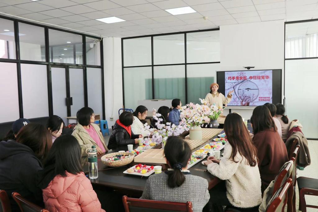 为庆祝第114个“三八”国际劳动妇女节,弘扬传统文化,丰富女教工业余文化生活,3月7日,学院联合分会在国际教育学院、苏梅国际学院会议室举办“巧手秀女红、巾帼绽芳华”活动,分会近20名女教工参加了活动。