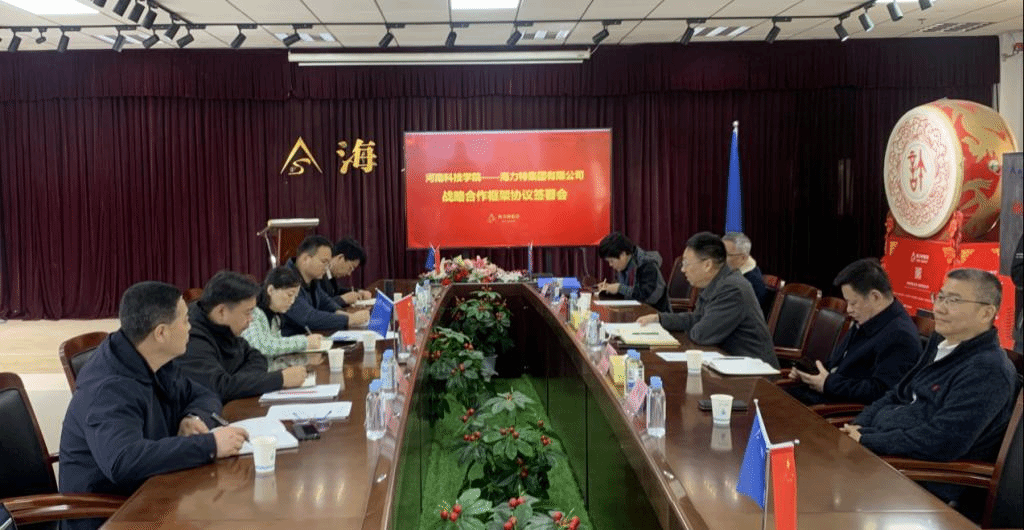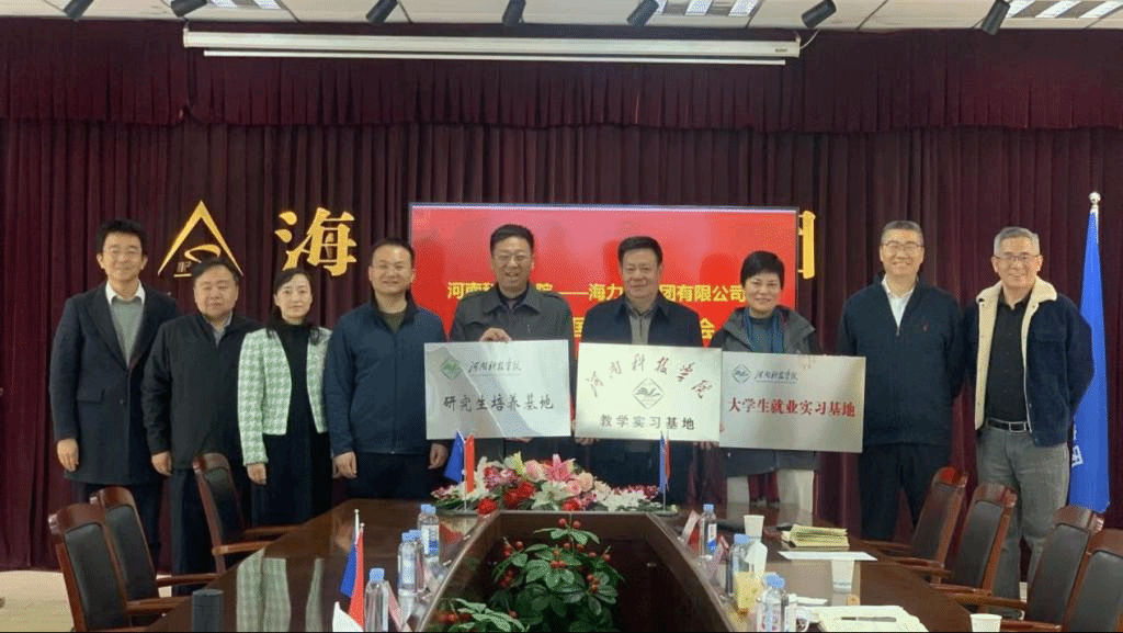 为进一步推动产学研创深度融合,提升人才培养质量,拓宽毕业生就业渠道,在郑州市轻工业行业协会牵头下,3月12日上午,人工智能学院党委书记叶晖、院长蔡磊、副院长孔德川、徐涛及学院骨干教师一行5人,赴河南海力特集团有限公司开展“访企拓岗促就业”活动,并举行了双方战略合作框架协议签署与教学实习、研究生培养和大学生就业实习基地的授牌仪式。郑州市轻工业行业协会秘书长王伟民,河南海力特集团有限公司董事长许智远、副总经理胡泽雄、董事长助理王新颜等全程参加了相关活动。