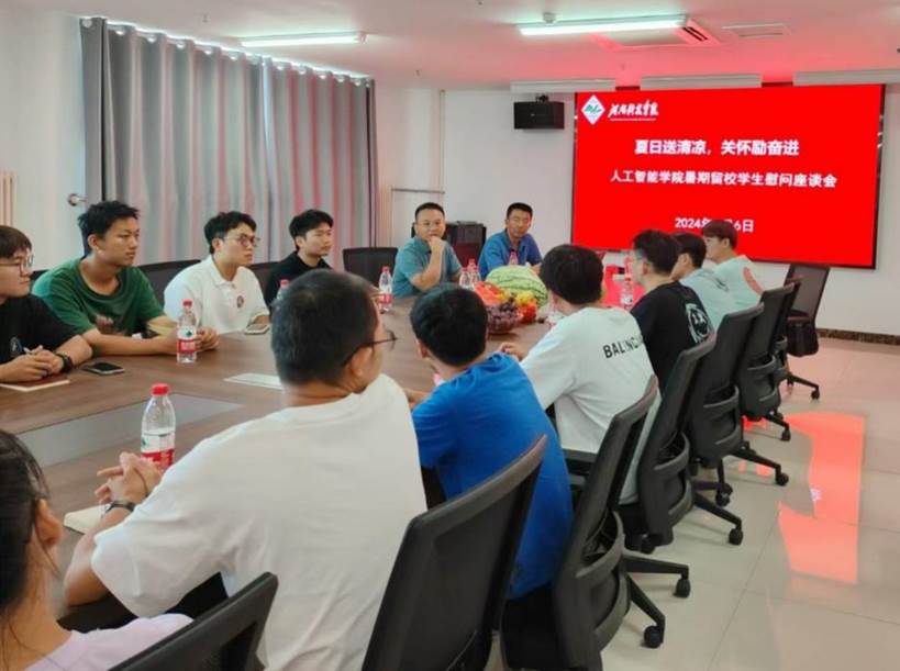 为进一步落实暑期留校学生的教育管理服务工作,形成全员、全程、全方位“三全育人”工作格局,8月6日下午,人工智能学院召开暑期留校学生慰问座谈会,学院院长蔡磊、副院长徐涛、研究生秘书以及全体留校本科生和研究生参加了本次座谈。座谈会由徐涛主持。
