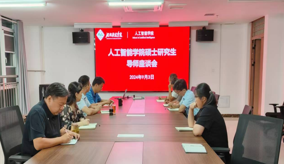 为进一步完善“三全育人”工作格局,切实做好学院首届电子信息(人工智能领域)专业硕士研究生教育教学工作,9月3日晚上,人工智能学院在弘德楼A205室召开2024级硕士研究生导师座谈会。学院党委书记叶晖、院长蔡磊、副院长孔德川、徐涛及全体研究生导师参加了本次座谈。座谈会由徐涛主持。