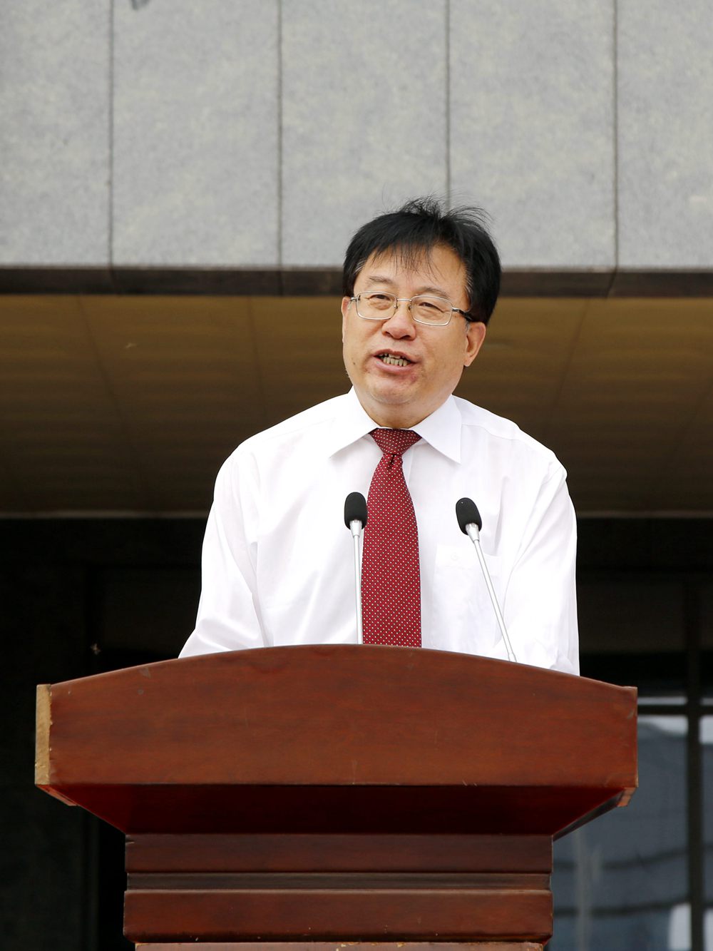 冯启高代表河南科技学院全体师生向辉县校区1700余名新生表示热烈欢迎!向承担本次军训工作的部队官兵表示衷心感谢!