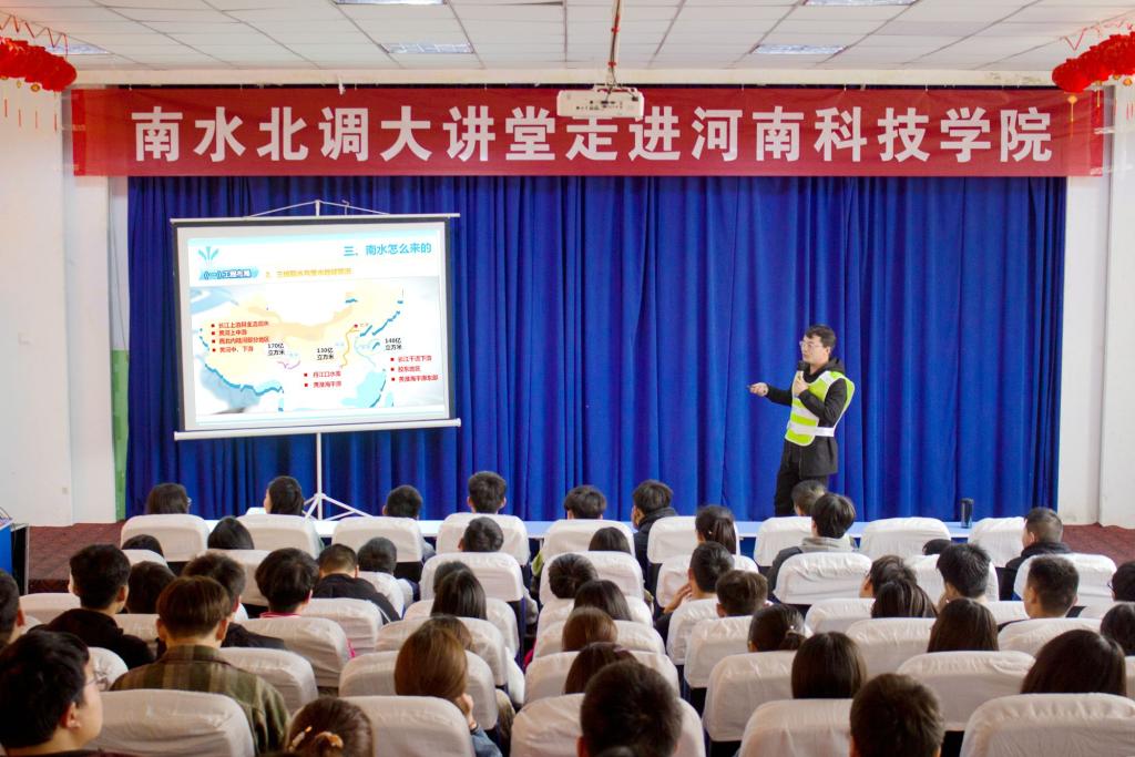 “千里长渠,纵贯南北;一脉清源,润泽万家;护水行动,从我开始”。3月28日,南水北调大讲堂在高职学院报告厅开课。南水北调中线辉县管理处主任李付举为学生讲解了生动的南水北调知识。