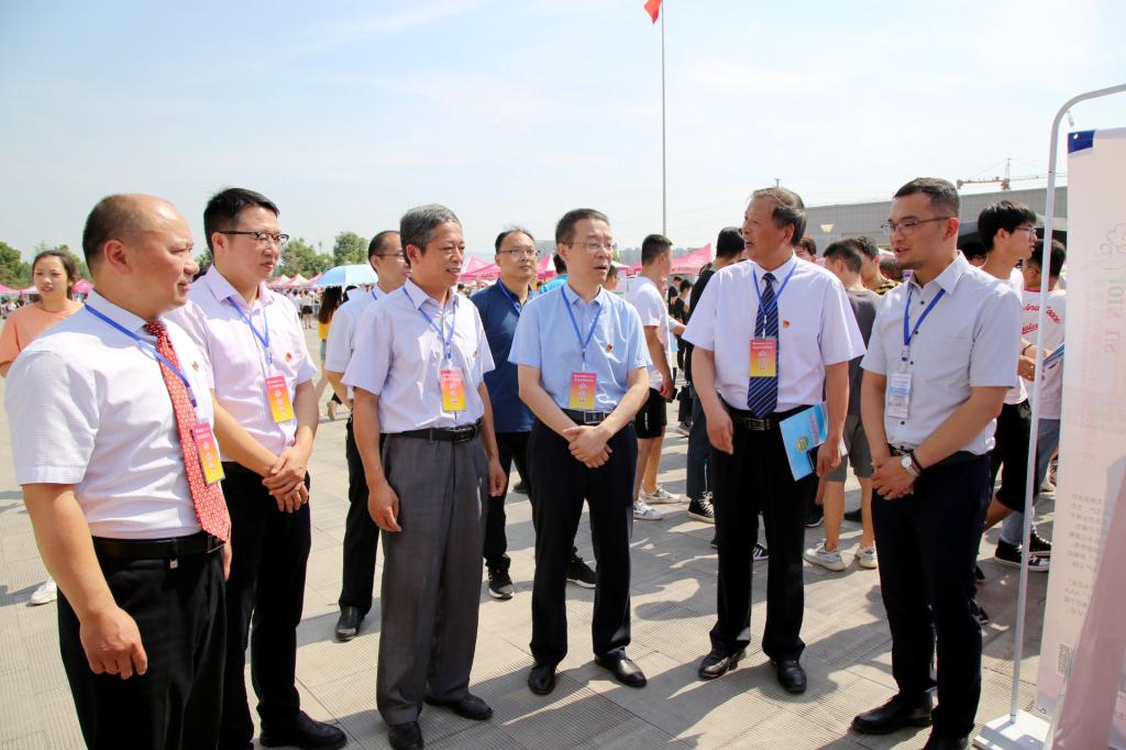 为进一步搭建就业及实习实训平台,加强校企合作,畅通产教融合,6月11日上午,由高职学院、辉县市人力资源和社会保障局共同主办的2019届毕业生供需见面会暨校企合作洽谈会在综合楼前广场举行。河南科技学院招生就业处、辉县市人力资源和社会保障局、高职学院等部门领导出席开幕式。
