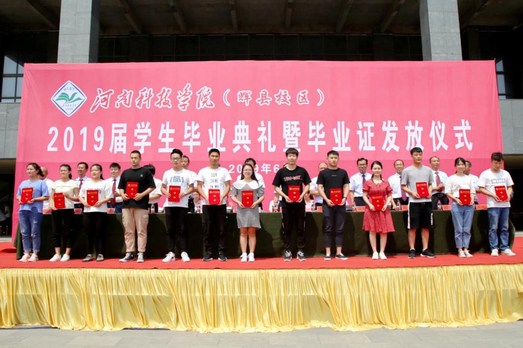 6月13日上午,辉县校区在东区广场举行2019届学生毕业典礼暨毕业证书发放仪式。河南科技学院副校长冯启高、校学生处处长翟居怀、校招生就业处处长巴新华、校长办公室副主任王吉田及高职学院党政领导出席典礼。相关职能部门负责人、最美教职工、优秀毕业生代表及2019届毕业生1500余人参加了毕业典礼。毕业典礼由高职学院院长乐玉忠主持。