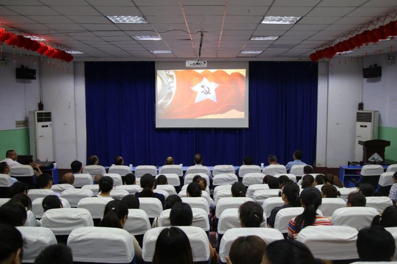 7月4日,高职学院全体教职工在报告厅集中观看《红旗漫卷西风》专题片。