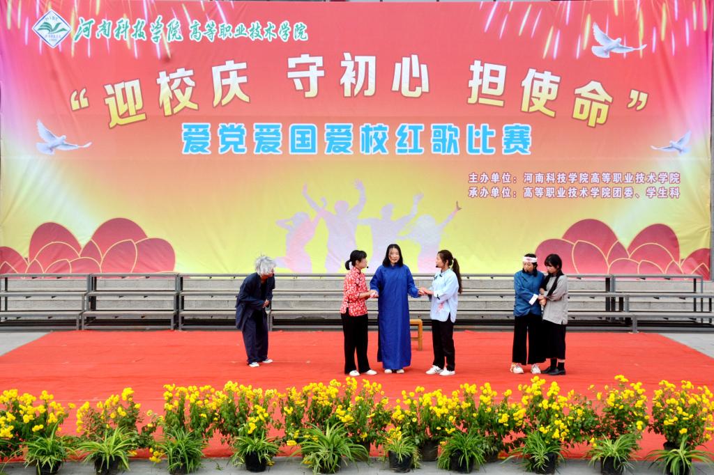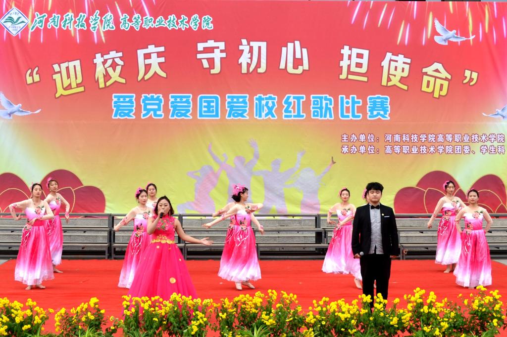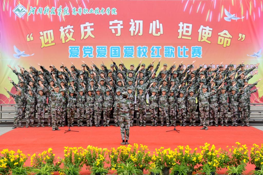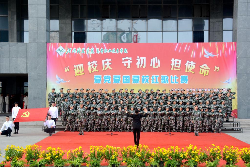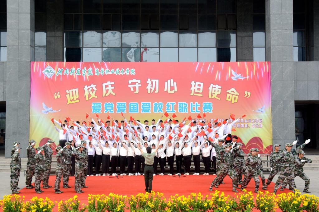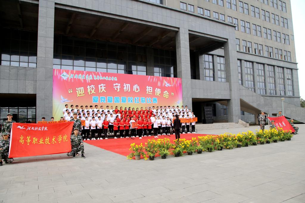 10月24日,由河南科技学院高等职业技术学院主办、院团委、学生科承办的以“迎校庆,守初心,担使命”为主题爱党爱国爱校合唱比赛在综合楼前广场举行。高职学院党政领导班子及各单位负责人,全院两千余名师生共同观看比赛。