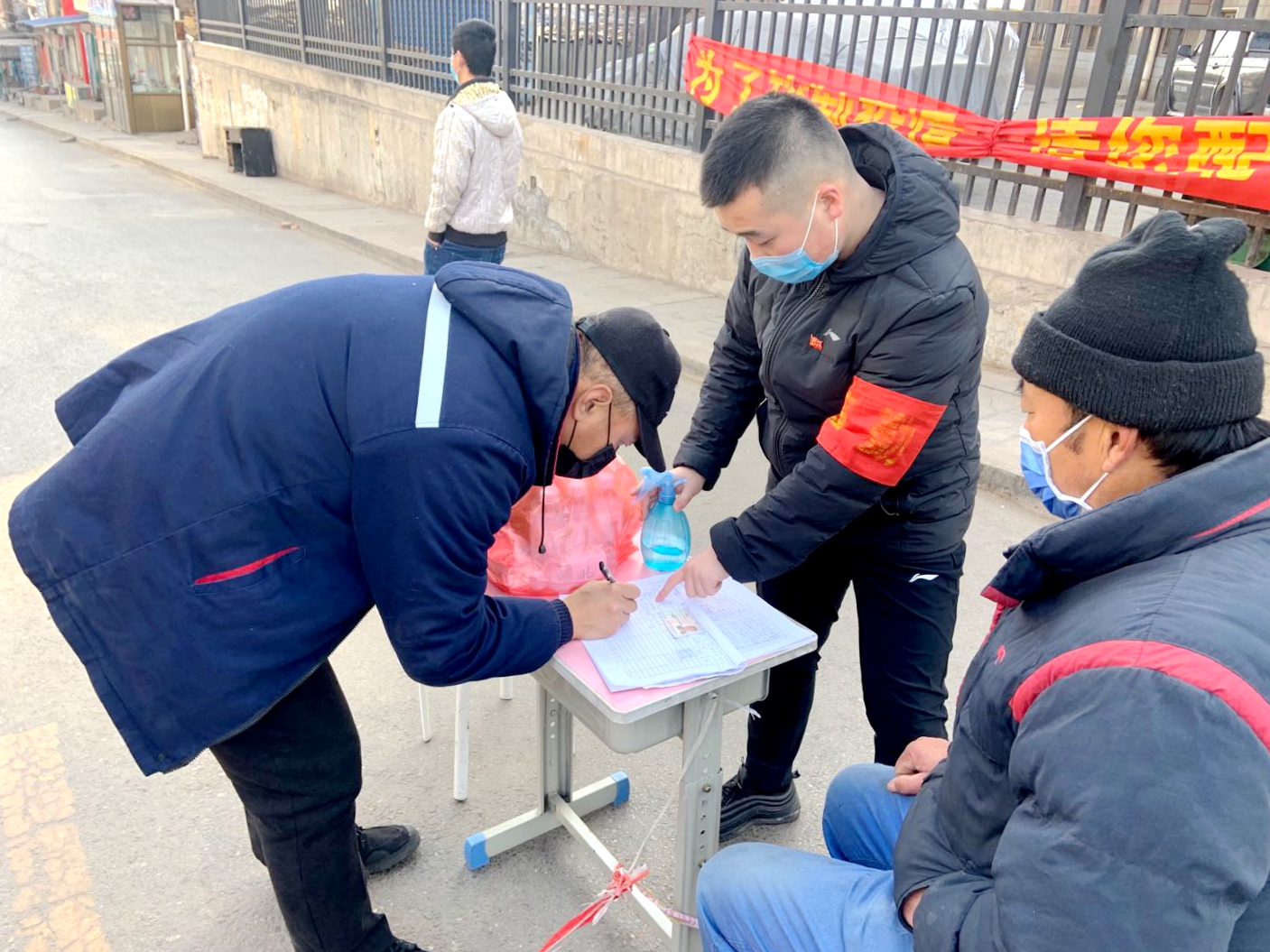 经管系17级学生王勇,第一时间向所在社区党支部提交了志愿申请,考核后成为了志愿抗“疫”的交通管控协管员。工作内容为在有聚集现象的群众中宣传防疫知识、协助工作人员劝散聚集人群、逐个入户排查是否有外来人员及外地返工人员、整理汇总排查名单、在监测点值班随时提供服务、报送各项工作材料等……疫情防控工作很辛苦,也遇到不少困难,他顶风扛雪,坚守岗位,严格把控人员流动。