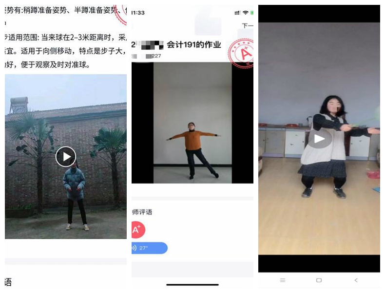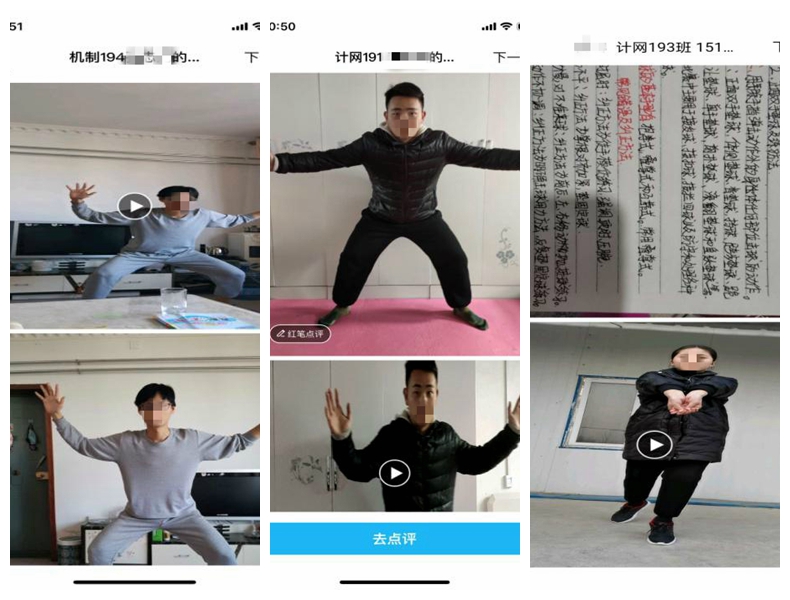 学生既要学习专业知识,又要增强体质抗击病毒,所以每天督促学生体育锻炼是不能少的。体育教学部教师“创意招式”层出不穷,“十八般武艺”轮番上演;教学内容包括篮球、乒乓球、足球、排球、健身操、网球、运动操、身体素质练习等居家体育锻炼与健康知识。